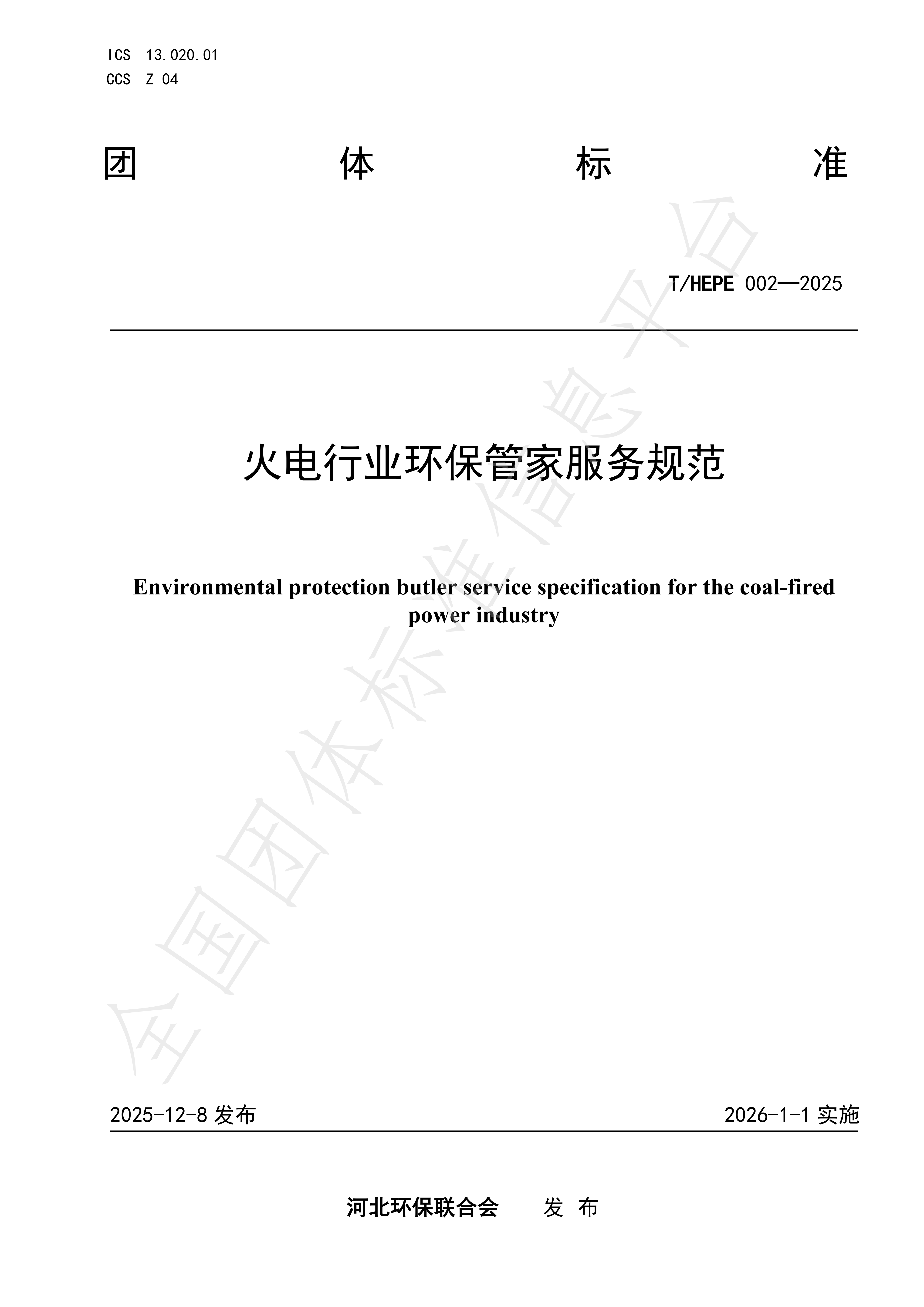 河北环保联合会团体标准发布公告2025年 第2号(总第2号